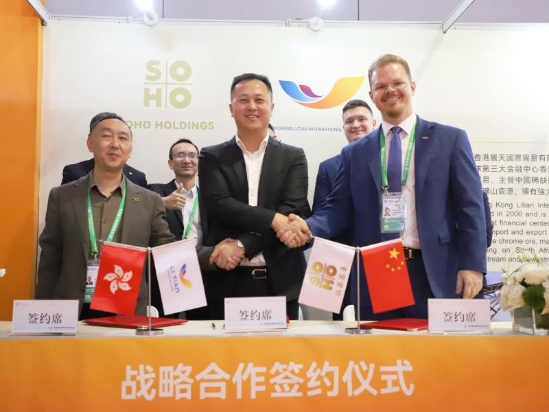 香港麗天公司在本屆進博會首次獨立參展,聚焦金屬礦產、農林糧油、能源化工等全省稀缺資源進口,展示了江蘇外貿公司近五年的發展歷程以及鉻礦、錳礦、鈦礦、菜籽油、天然橡膠、石油焦等主營業務產品,展現了江蘇外貿公司深度融入“一帶一路”建設成果以及服務全江蘇省現代化產業體系建設和構建自主可控供應鏈體系的能力。