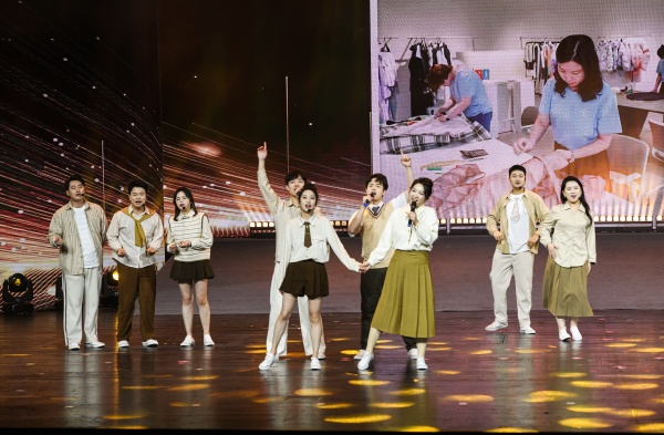 伴隨著不同律動(dòng)感的音樂(lè),舞臺(tái)秀《錦“秀”蘇豪》中的演員們身著集團(tuán)自有品牌服飾,上演了一場(chǎng)精美絕倫的T臺(tái)走秀,在古典與時(shí)尚的視覺(jué)碰撞中,再現(xiàn)了集團(tuán)以紡織服裝為基本盤,加強(qiáng)設(shè)計(jì)研發(fā)、開(kāi)展自主創(chuàng)新、推動(dòng)轉(zhuǎn)型升級(jí)的豐碩成果。