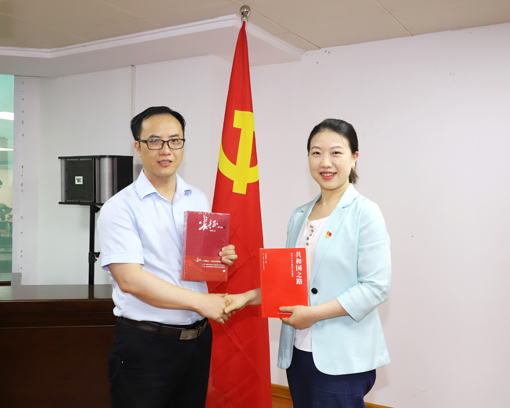 王卓和朱振鋒分別代表雙方支部互贈了黨建讀物,助力支部開展黨員學習教育。